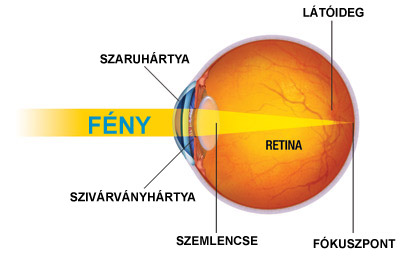 A fénytörő képességeket a fókusztávolság reciprok értékével fejezzük ki méterben amit dioptriának nevezünk. A szem együttes törőereje kb. 60D. A dioptriaváltozás (kb.12D) teszi lehetővé a szem közel ill.-távollátáshoz való alkalmazkodását. Emmetropnak nevezzük a fénytörési hibától mentes szemet, amely a belső szemizmok nyugalmi állapota mellett, a végtelenből érkező párhuzamos fénysugarakat a szem törőközegein áthaladva az ideghártyán (retinán) egyesíti képponttá.